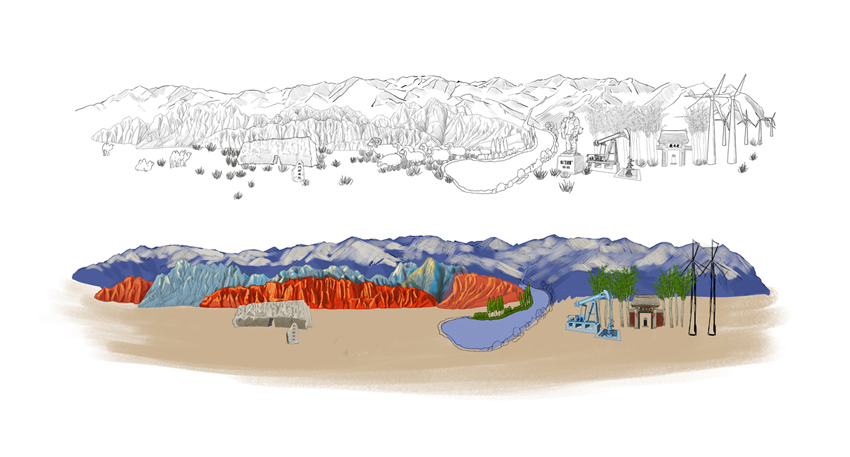 玉門珍好項目從品牌命名到形象終端落地,服務內容: 品牌全案策劃,品牌定位,品牌調性,賣點提煉,品牌命名,超級符號設計,LOGO設計,VI設計,包裝設計,終端形象設計,后期維護等,產品分為:黑枸杞、紅枸杞、胡麻油、韭菜、葵花籽、辣椒、藜麥、蜜瓜、蟠桃、葡萄、羊肉、羊羔肉和人參果13個類別,為了樹立一套有地域性、有產品個性和高度統一性的形象識別,智慧天成團隊受當地政府委托,用時半個月幾乎走遍玉門地標,充分了解掌握當地產業和文化,并提煉玉門最具代表性的人文、建筑、地理環境等元素,純手繪插畫形式把產品和玉門風情完美融合,形成一幅幅有創意的、生動的、美好情懷的迷人畫面。